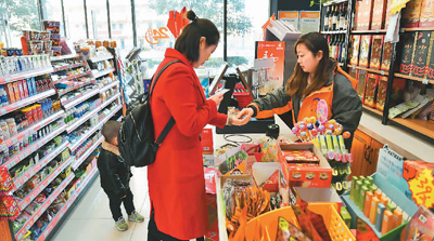 西安慧灵公益超市的店员在给顾客找零。记者 刘潇 摄