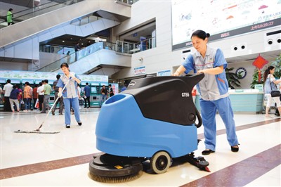 两位清洁工在安徽省铜陵市人力资源和社会保障局开发的市人民医院公益性岗位上工作。过仕宁 摄(人民图片)