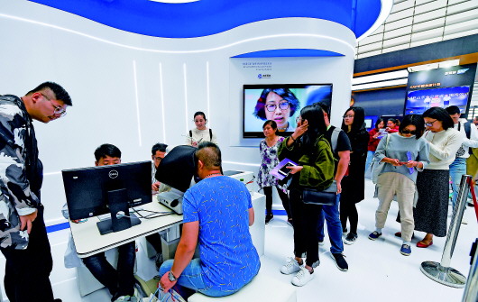 在浙江乌镇举行的互联网之光博览会上,观众在腾讯的人工智能展台前排队体验眼底检查(10月21日摄)。新华社记者尹栋逊摄