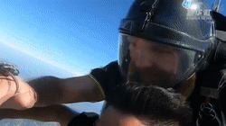 在山东,失去双腿的青年成功挑战跳伞,露出了灿烂的笑容。