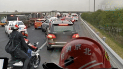 在北京,一辆消防车出警救援时被堵,两名热心骑手帮忙疏导交通。