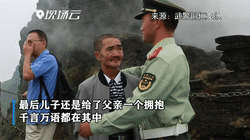 在贵州,一名坚守岗位的战士身旁伫立着不舍离去的老父亲,千言万语化作一个深情的拥抱。