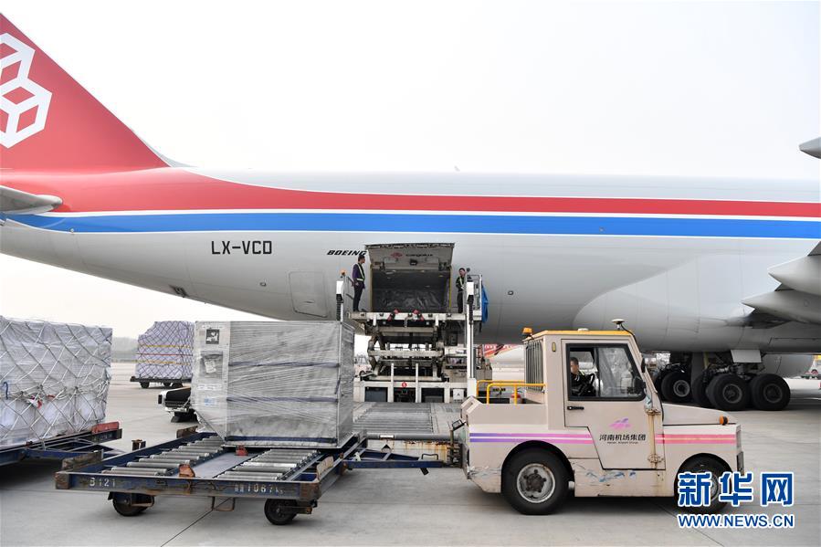 郑州新郑国际机场工作人员为卢森堡国际货运航空公司货机卸货(11月7日摄)。 新华社记者 李嘉南 摄