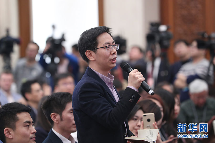 全国政协十三届二次会议新闻发布会于3月2日15:00在人民大会堂一层新闻发布厅召开,大会新闻发言人郭卫民向中外媒体介绍本次大会有关情况并回答记者提问。图为人民日报社记者提问。新华网/中国政府网 翟子赫 摄
