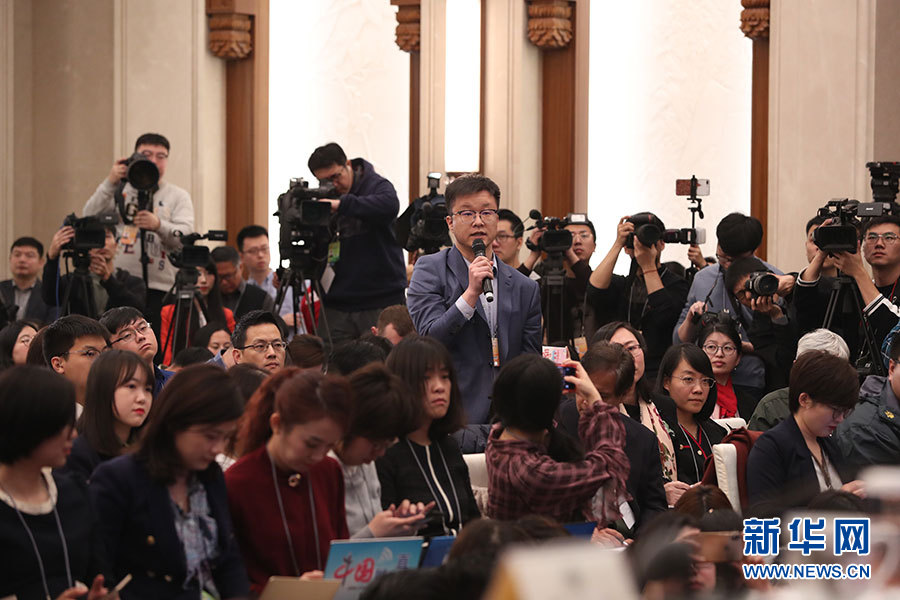 全国政协十三届二次会议新闻发布会于3月2日15:00在人民大会堂一层新闻发布厅召开,大会新闻发言人郭卫民向中外媒体介绍本次大会有关情况并回答记者提问。图为中国新闻社记者。