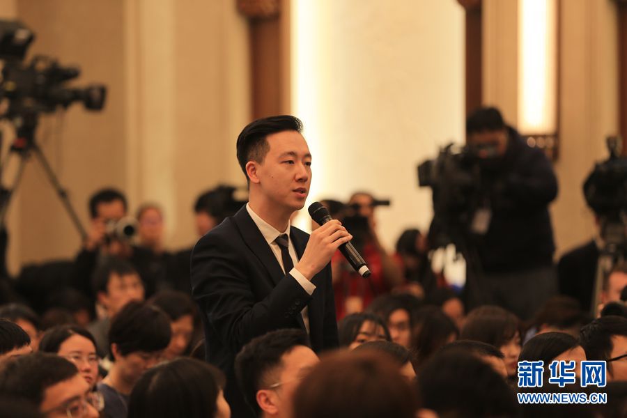全国政协十三届二次会议新闻发布会于3月2日15:00在人民大会堂一层新闻发布厅召开,大会新闻发言人郭卫民向中外媒体介绍本次大会有关情况并回答记者提问。图为中国日报记者提问。新华网/中国政府网 刘厦 摄