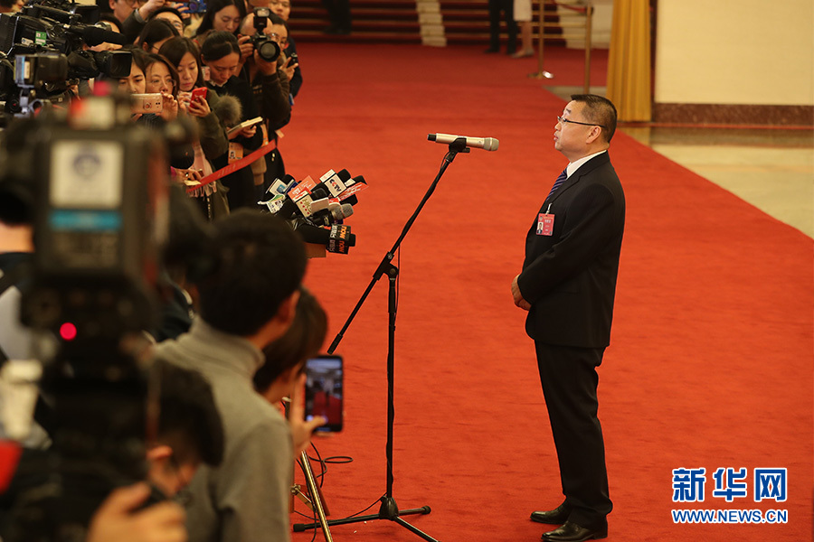 3月3日下午,全国政协十三届二次会议开幕会结束后,2019年全国两会“部长通道”在人民大会堂正式开启,部长们在这里直面热点,回应关切。图为国家医疗保障局局长胡静林接受采访。新华网/中国政府网 陈杰 摄