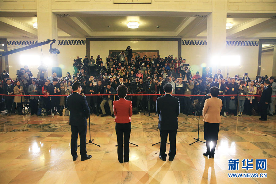 全国政协十三届二次会议于3月3日下午3时在北京人民大会堂开幕。新华网、中国政府网进行现场直播。图为全国政协委员接受采访。新华网/中国政府网 刘厦 摄