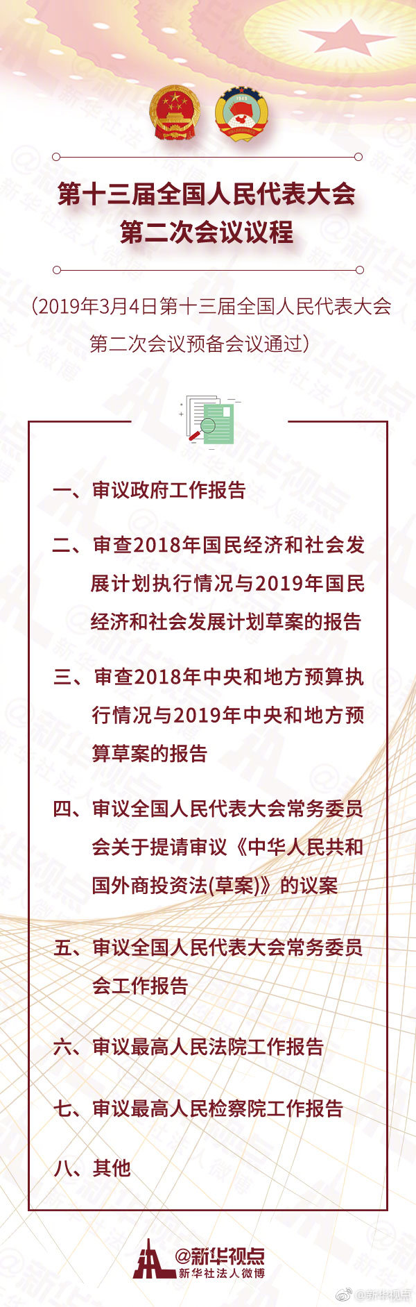 第十三届全国人民代表大会第二次会议议程