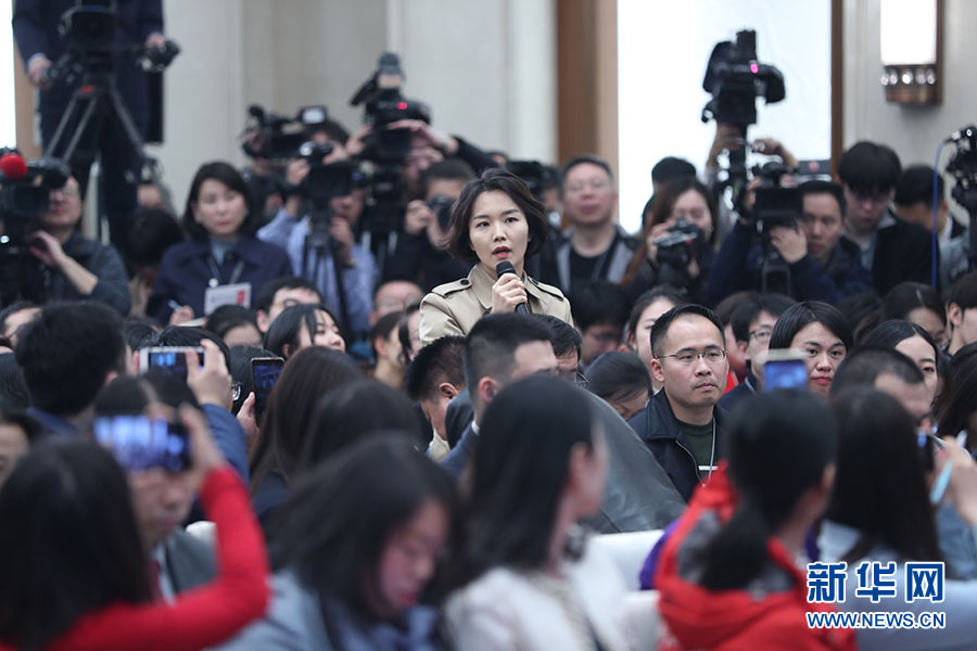 十三届全国人大二次会议3月4日上午11时15分在人民大会堂新闻发布厅举行新闻发布会,由大会发言人就大会议程和人大工作相关的问题回答中外记者提问。图为韩国广播电视台记者提问。新华网/中国政府网 陈杰 摄