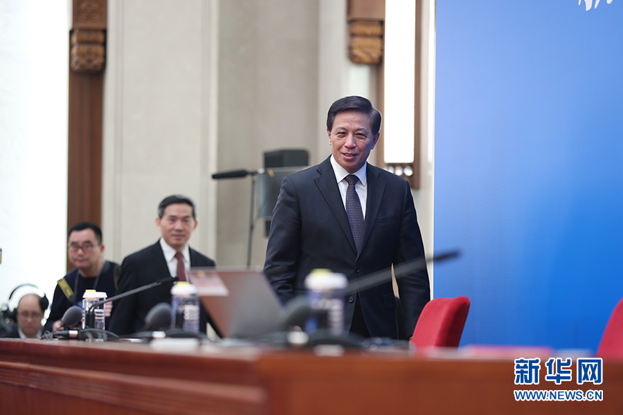 十三届全国人大二次会议3月4日上午11时15分在人民大会堂新闻发布厅举行新闻发布会,由大会发言人张业遂就大会议程和人大工作相关的问题回答中外记者提问。图为张业遂步入会场。新华网/中国政府网 翟子赫 摄