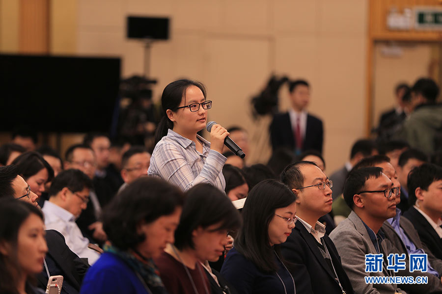 全国政协十三届二次会议3月5日15:00在梅地亚中心多功能厅举行记者会,邀请5位全国政协委员就“打赢防范化解重大风险、精准脱贫、污染防治三大攻坚战”回答记者提问。图为澎湃新闻记者提问。新华网/中国政府网 刘厦 摄
