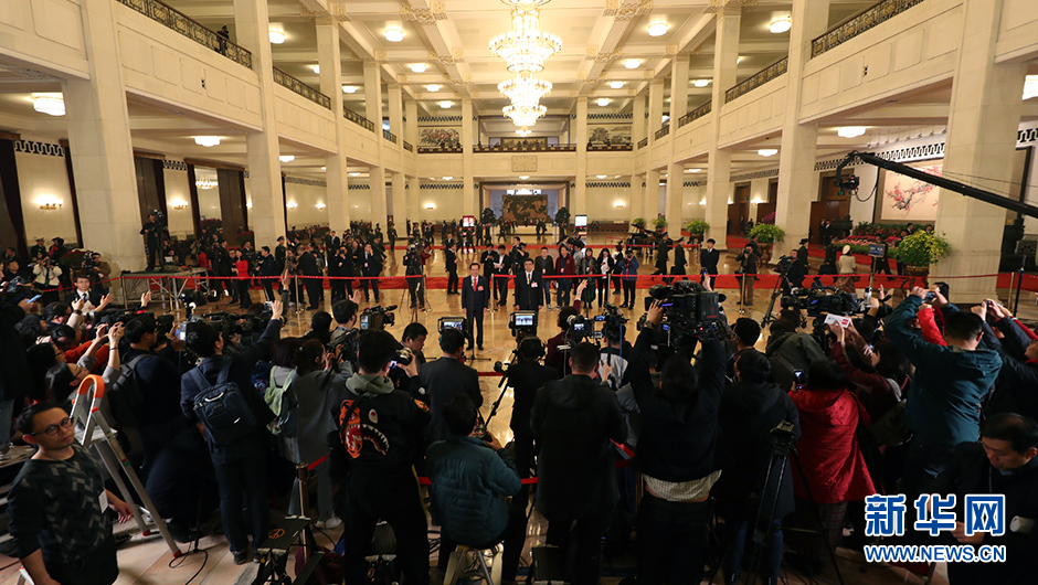 3月5日,第十三届全国人民代表大会第二次会议在北京人民大会堂开幕。这是全国人大代表在“代表通道”接受采访。新华网/中国政府网 陈杰 摄