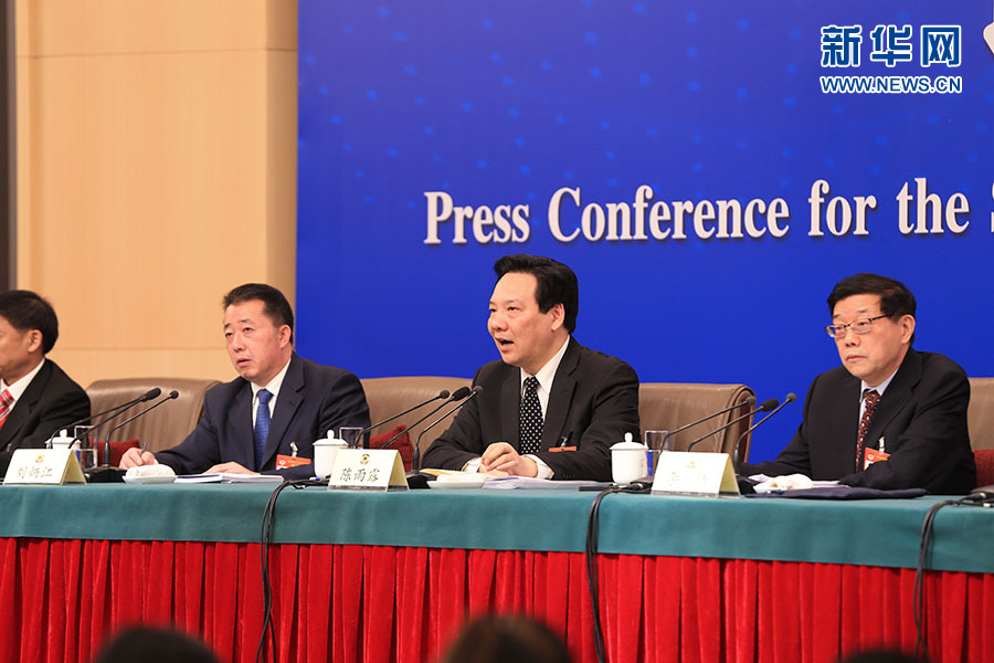 全国政协十三届二次会议3月5日15:00在梅地亚中心多功能厅举行记者会,邀请5位全国政协委员就“打赢防范化解重大风险、精准脱贫、污染防治三大攻坚战”回答记者提问。图为全国政协经济委员会副主任(经济界)、中国人民银行副行长陈雨露回答记者提问。新华网/中国政府网 刘厦 摄