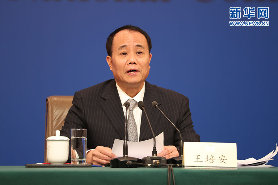全国政协十三届二次会议3月5日15:00在梅地亚中心多功能厅举行记者会,邀请5位全国政协委员就“打赢防范化解重大风险、精准脱贫、污染防治三大攻坚战”回答记者提问。图为全国政协人口资源环境委员会副主任(福利保障界),中国计划生育协会党组书记、常务副会长,原国家卫生计生委副主任王培安回答记者提问。新华网/中国政府网 陈杰 摄