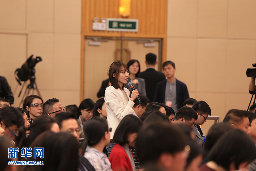 全国政协十三届二次会议3月5日15:00在梅地亚中心多功能厅举行记者会,邀请5位全国政协委员就“打赢防范化解重大风险、精准脱贫、污染防治三大攻坚战”回答记者提问。图为中央广播电视总台央视记者提问。新华网/中国政府网 刘厦 摄