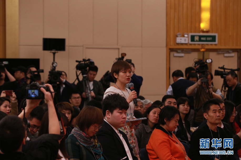 十三届全国人大二次会议新闻中心于3月6日(星期三)上午10时在梅地亚中心新闻发布厅举行记者会,邀请国家发展改革委主任何立峰,副主任宁吉喆、连维良就“大力推动经济高质量发展”相关问题回答中外记者的提问。图为新华社记者提问。新华网/中国政府网 马娟 摄