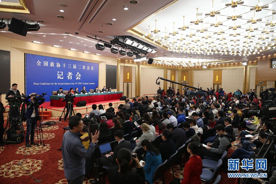 全国政协十三届二次会议3月6日下午在梅地亚两会新闻中心举行记者会,邀请5位全国政协委员就“优化营商环境、促进民营经济高质量发展”回答记者提问。图为记者会现场。新华网/中国政府网 刘厦 摄