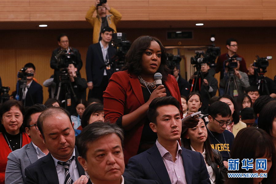 全国政协十三届二次会议3月6日下午在梅地亚两会新闻中心举行记者会,邀请5位全国政协委员就“优化营商环境、促进民营经济高质量发展”回答记者提问。图为中国国际电视台记者提问。新华网/中国政府网 马娟 摄