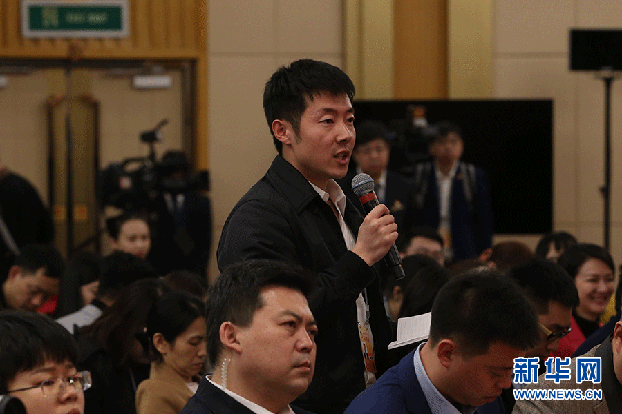 全国政协十三届二次会议3月6日下午在梅地亚两会新闻中心举行记者会,邀请5位全国政协委员就“优化营商环境、促进民营经济高质量发展”回答记者提问。图为工人日报记者提问。新华网/中国政府网 马娟 摄
