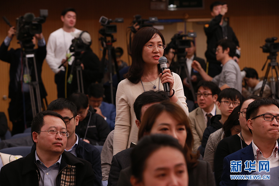十三届全国人大二次会议新闻中心于3月6日(星期三)上午10时在梅地亚中心新闻发布厅举行记者会,邀请国家发展改革委主任何立峰,副主任宁吉喆、连维良就“大力推动经济高质量发展”相关问题回答中外记者的提问。图为中国改革报改革网记者提问。新华网/中国政府网 刘厦 摄