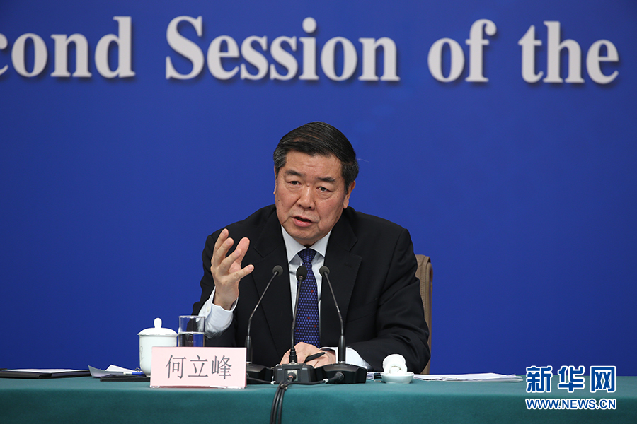 十三届全国人大二次会议新闻中心于3月6日(星期三)上午10时在梅地亚中心新闻发布厅举行记者会,邀请国家发展改革委主任何立峰,副主任宁吉喆、连维良就“大力推动经济高质量发展”相关问题回答中外记者的提问。图为何立峰。新华网/中国政府网 刘厦 摄