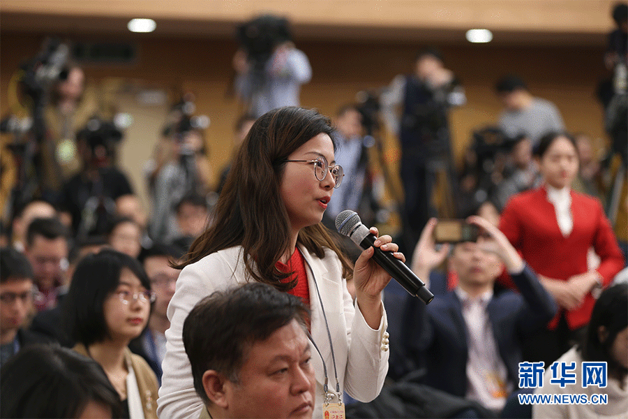 十三届全国人大二次会议新闻中心3月9日(星期六)10时30分在梅地亚中心新闻发布厅举行记者会,邀请商务部部长钟山、副部长兼国际贸易谈判副代表王受文、副部长钱克明就“促进形成强大国内市场 推动全方位对外开放”相关问题回答中外记者提问。图为中央广播电视总台国广记者提问。新华网/中国政府网 刘厦 摄