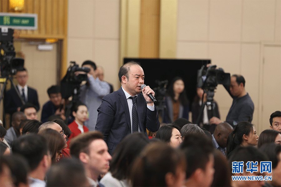 十三届全国人大二次会议新闻中心3月9日(星期六)10时30分在梅地亚中心新闻发布厅举行记者会,邀请商务部部长钟山、副部长兼国际贸易谈判副代表王受文、副部长钱克明就“促进形成强大国内市场 推动全方位对外开放”相关问题回答中外记者提问。图为日本经济新闻记者提问。新华网/中国政府网 刘厦 摄