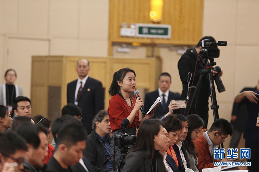 十三届全国人大二次会议新闻中心3月9日(星期六)10时30分在梅地亚中心新闻发布厅举行记者会,邀请商务部部长钟山、副部长兼国际贸易谈判副代表王受文、副部长钱克明就“促进形成强大国内市场 推动全方位对外开放”相关问题回答中外记者提问。图为齐鲁晚报齐鲁壹点记者提问。新华网/中国政府网 刘厦 摄