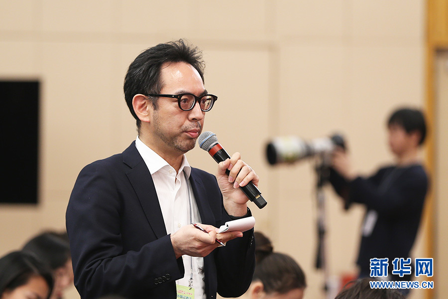 十三届全国人大二次会议新闻中心3月9日(星期六)15时在梅地亚中心新闻发布厅举行记者会,邀请国务院国资委主任肖亚庆,副主任翁杰明,秘书长、新闻发言人彭华岗就“国有企业改革发展”相关问题回答中外记者提问。图为日本共同社记者提问。新华网/中国政府网 刘厦 摄