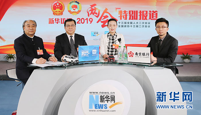 3月9日,全国人大代表、安徽省亳州市市长杜延安;全国人大代表、古井集团董事长梁金辉;全国人大代表、亳州市健身气功五禽戏协会主席陈静做客新华网2019全国两会特别报道。新华网 毛嘉炜摄。