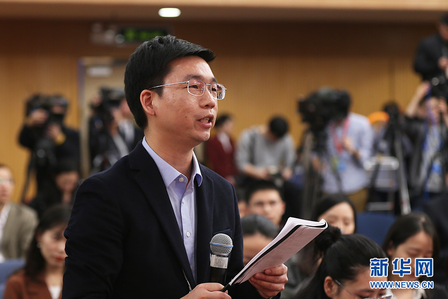 十三届全国人大二次会议新闻中心3月9日(星期六)15时在梅地亚中心新闻发布厅举行记者会,邀请国务院国资委主任肖亚庆,副主任翁杰明,秘书长、新闻发言人彭华岗就“国有企业改革发展”相关问题回答中外记者提问。图为湖北广播电视台融媒体新闻中心记者提问。新华网/中国政府网 刘厦 摄