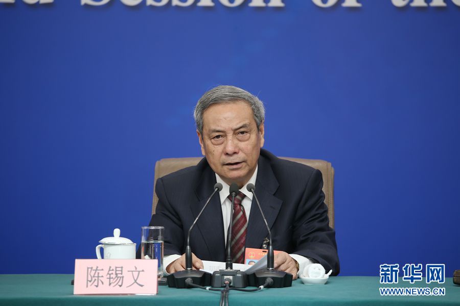 十三届全国人大二次会议新闻中心3月9日在梅地亚中心新闻发布厅举行记者会,邀请全国人大农业与农村委员会主任委员陈锡文、全国人大财政经济委员会副主任委员乌日图、全国人大常委会法制工作委员会副主任刘俊臣、全国人大常委会法制工作委员会副主任许安标、全国人大环境与资源保护委员会委员程立峰就“人大立法工作”相关问题回答记者提问。图为全国人大农业与农村委员会主任委员陈锡文。新华网/中国政府网 刘厦 摄