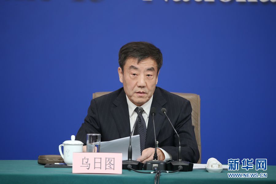 十三届全国人大二次会议新闻中心3月9日在梅地亚中心新闻发布厅举行记者会,邀请全国人大农业与农村委员会主任委员陈锡文、全国人大财政经济委员会副主任委员乌日图、全国人大常委会法制工作委员会副主任刘俊臣、全国人大常委会法制工作委员会副主任许安标、全国人大环境与资源保护委员会委员程立峰就“人大立法工作”相关问题回答记者提问。图为全国人大财政经济委员会副主任委员乌日图。新华网/中国政府网 刘厦 摄