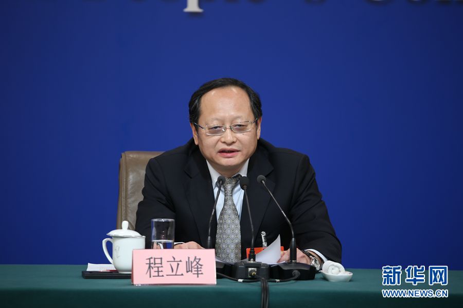 十三届全国人大二次会议新闻中心3月9日在梅地亚中心新闻发布厅举行记者会,邀请全国人大农业与农村委员会主任委员陈锡文、全国人大财政经济委员会副主任委员乌日图、全国人大常委会法制工作委员会副主任刘俊臣、全国人大常委会法制工作委员会副主任许安标、全国人大环境与资源保护委员会委员程立峰就“人大立法工作”相关问题回答记者提问。图为全国人大环境与资源保护委员会委员程立峰。新华网/中国政府网 刘厦 摄