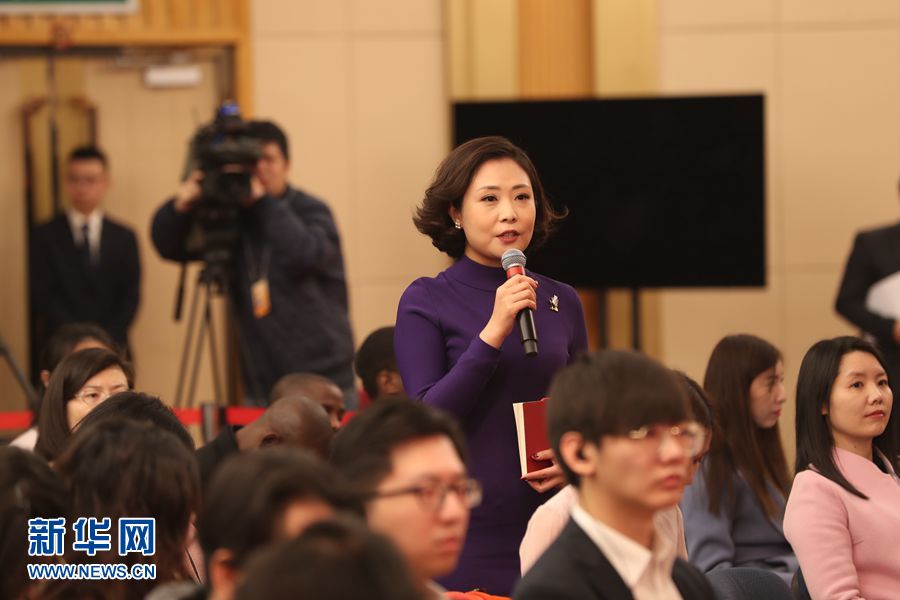 十三届全国人大二次会议新闻中心3月9日在梅地亚中心新闻发布厅举行记者会,邀请全国人大农业与农村委员会主任委员陈锡文、全国人大财政经济委员会副主任委员乌日图、全国人大常委会法制工作委员会副主任刘俊臣、全国人大常委会法制工作委员会副主任许安标、全国人大环境与资源保护委员会委员程立峰就“人大立法工作”相关问题回答记者提问。图为中国国际电视台CGTN记者提问。新华网/中国政府网 陈杰 摄