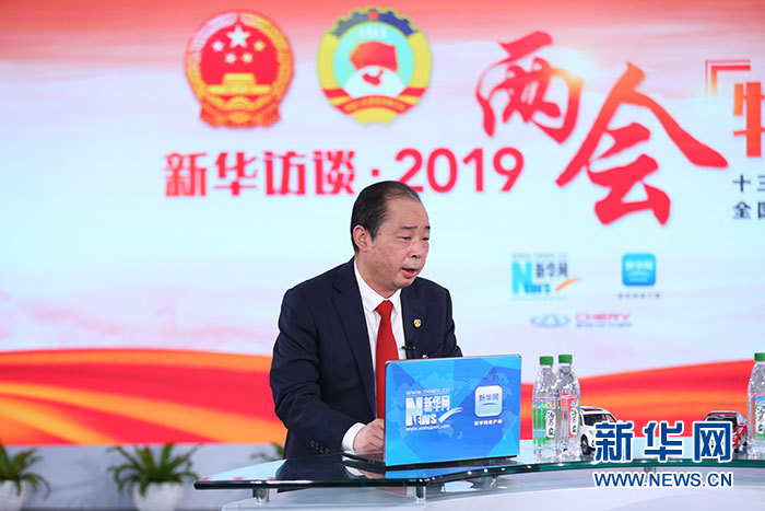 3月10日,全国人大代表、德力西集团董事局主席胡成中做客新华网2019全国两会特别报道。新华网 陈延特摄。