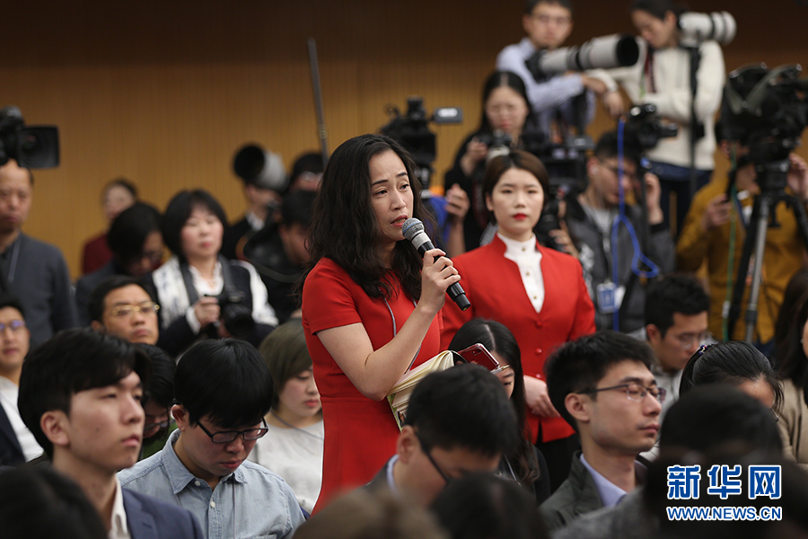 十三届全国人大二次会议新闻中心于3月10日(星期日)上午10时30分在梅地亚中心新闻发布厅举行记者会,邀请中国人民银行行长易纲,副行长陈雨露,副行长、国家外汇管理局局长潘功胜,副行长范一飞就“金融改革与发展”相关问题回答记者提问。图为华尔街日报记者提问。新华网/中国政府网 刘厦 摄