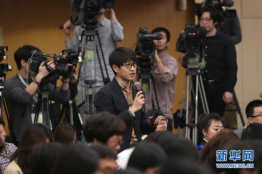 十三届全国人大二次会议新闻中心于3月10日(星期日)上午10时30分在梅地亚中心新闻发布厅举行记者会,邀请中国人民银行行长易纲,副行长陈雨露,副行长、国家外汇管理局局长潘功胜,副行长范一飞就“金融改革与发展”相关问题回答记者提问。图为中央广播电视总台国广记者提问。新华网/中国政府网 刘厦 摄