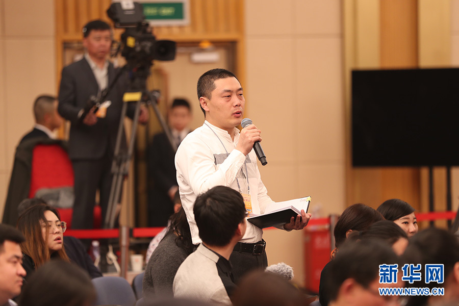 十三届全国人大二次会议新闻中心于3月10日(星期日)15时在梅地亚中心新闻发布厅举行记者会,邀请全国人大监察和司法委员会副主任委员徐显明、全国人大财政经济委员会副主任委员尹中卿、全国人大教育科学文化卫生委员会副主任委员吴恒、全国人大环境与资源保护委员会副主任委员窦树华和全国人大常委会预算工作委员会副主任朱明春就“人大监督工作”相关问题回答中外记者提问。图为法制日报全媒体记者提问。新华网/中国政府网 刘厦 摄