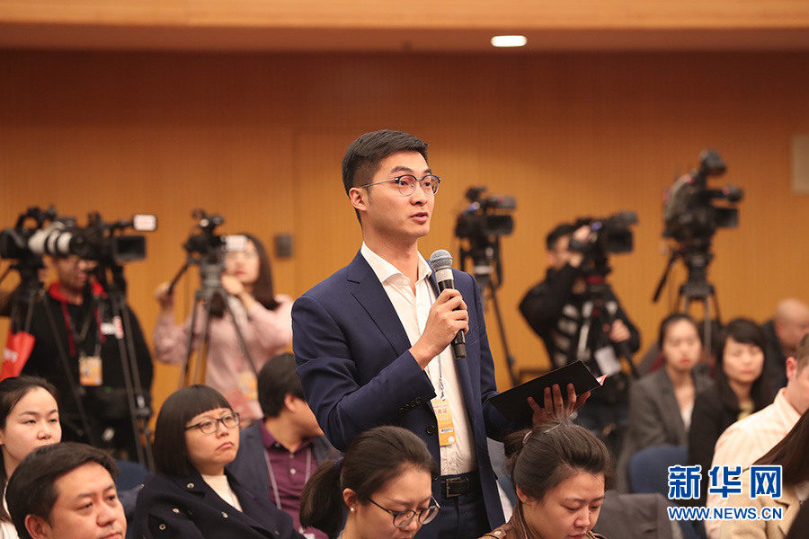 十三届全国人大二次会议新闻中心于3月10日(星期日)15时在梅地亚中心新闻发布厅举行记者会,邀请全国人大监察和司法委员会副主任委员徐显明、全国人大财政经济委员会副主任委员尹中卿、全国人大教育科学文化卫生委员会副主任委员吴恒、全国人大环境与资源保护委员会副主任委员窦树华和全国人大常委会预算工作委员会副主任朱明春就“人大监督工作”相关问题回答中外记者提问。图为中央广播电视总台央广记者提问。新华网/中国政府网 陈杰 摄