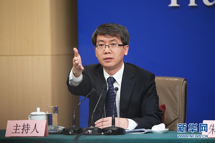 十三届全国人大二次会议新闻中心于3月10日(星期日)15时在梅地亚中心新闻发布厅举行记者会,邀请全国人大监察和司法委员会副主任委员徐显明、全国人大财政经济委员会副主任委员尹中卿、全国人大教育科学文化卫生委员会副主任委员吴恒、全国人大环境与资源保护委员会副主任委员窦树华和全国人大常委会预算工作委员会副主任朱明春就“人大监督工作”相关问题回答中外记者提问。图为十三届全国人大二次会议新闻中心副主任、主持人韩林宏。新华网/中国政府网 刘厦 摄