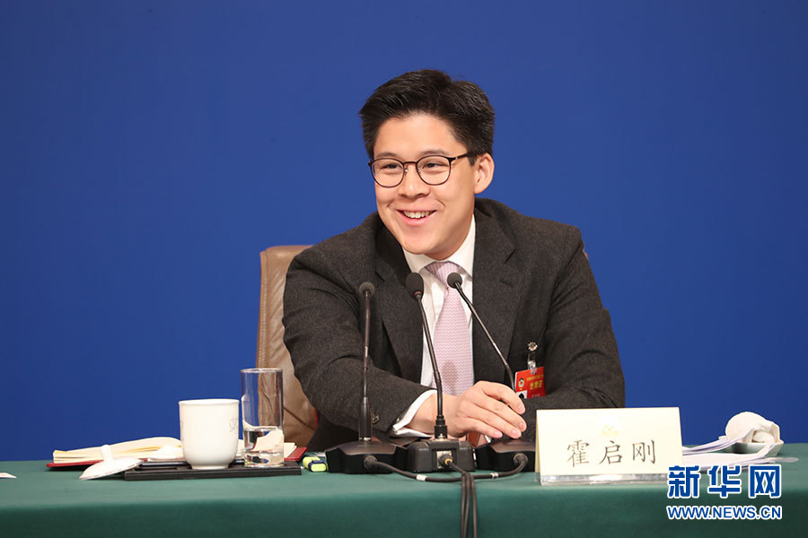 全国政协十三届二次会议3月10日(星期日)上午8:45在梅地亚两会新闻中心举行记者会,邀请5位政协委员就“新时代政协履职”回答记者提问。新华网、中国政府网进行现场直播。图为全国政协委员、中国香港体育协会暨奥林匹克委员会副会长、霍英东集团副总裁霍启刚。新华网/中国政府网 陈杰摄