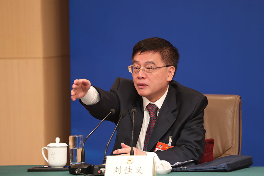 全国政协十三届二次会议3月10日(星期日)上午8:45在梅地亚两会新闻中心举行记者会,邀请5位政协委员就“新时代政协履职”回答记者提问。新华网、中国政府网进行现场直播。图为主持人刘佳义。新华网/中国政府网 陈杰摄