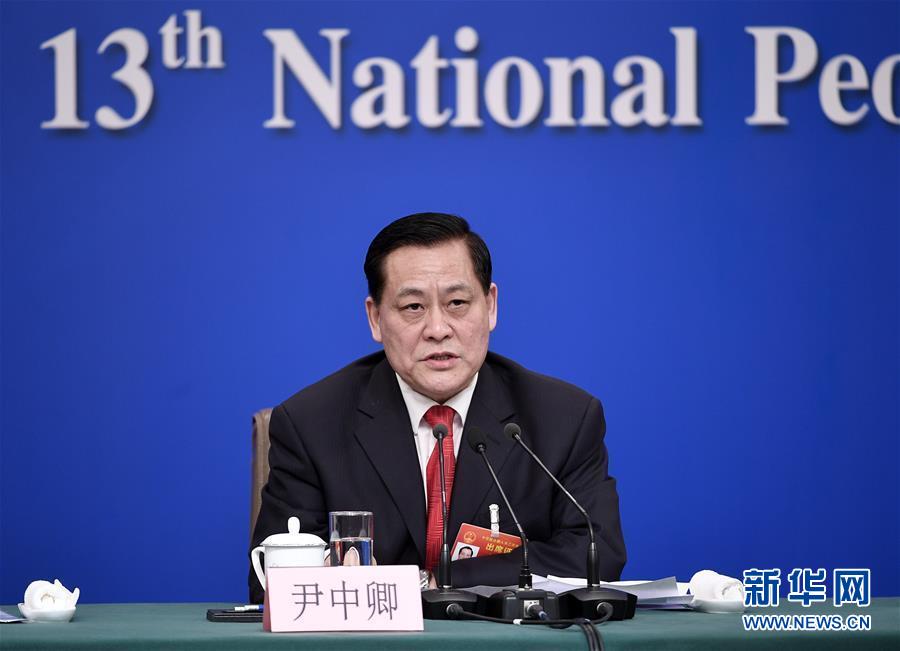 3月10日,十三届全国人大二次会议新闻中心举行记者会,邀请全国人大监察和司法委员会副主任委员徐显明、全国人大财政经济委员会副主任委员尹中卿、全国人大教育科学文化卫生委员会副主任委员吴恒、全国人大环境与资源保护委员会副主任委员窦树华和全国人大常委会预算工作委员会副主任朱明春就“人大监督工作”相关问题回答中外记者提问。这是尹中卿在回答记者提问。 新华社记者 王鹏 摄