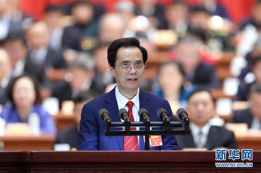3月11日,全国政协十三届二次会议在北京人民大会堂举行第四次全体会议。这是梁华委员作大会发言。 新华社记者 饶爱民 摄