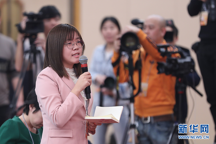 十三届全国人大二次会议新闻中心于3月11日(星期一)15时在梅地亚中心新闻发布厅举行记者会,邀请生态环境部部长李干杰就“打好污染防治攻坚战”相关问题回答中外记者提问。图为中央广播电视总台国广记者提问。新华网/中国政府网 王健 摄
