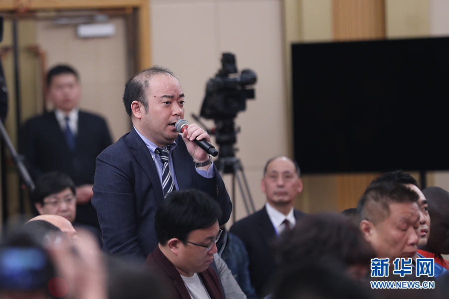 十三届全国人大二次会议新闻中心于3月11日(星期一)15时在梅地亚中心新闻发布厅举行记者会,邀请生态环境部部长李干杰就“打好污染防治攻坚战”相关问题回答中外记者提问。图为日本经济新闻记者提问。新华网/中国政府网 王健 摄