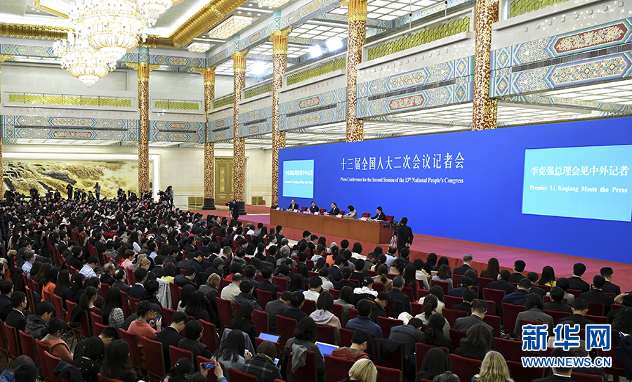 3月15日,国务院总理李克强在北京人民大会堂会见采访十三届全国人大二次会议的中外记者并答记者问。 新华社记者 殷博古 摄