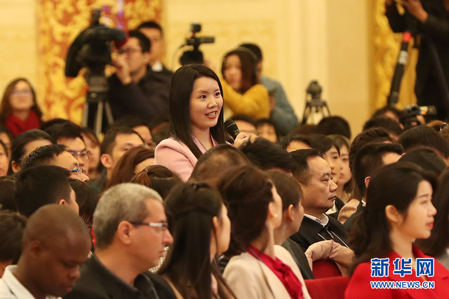 3月15日上午十三届全国人大二次会议闭幕后,国务院总理李克强在人民大会堂三楼金色大厅会见采访十三届全国人大二次会议的中外记者并回答记者提出的问题。图为财新周刊财新网记者提问。新华网/中国政府网 陈杰 摄